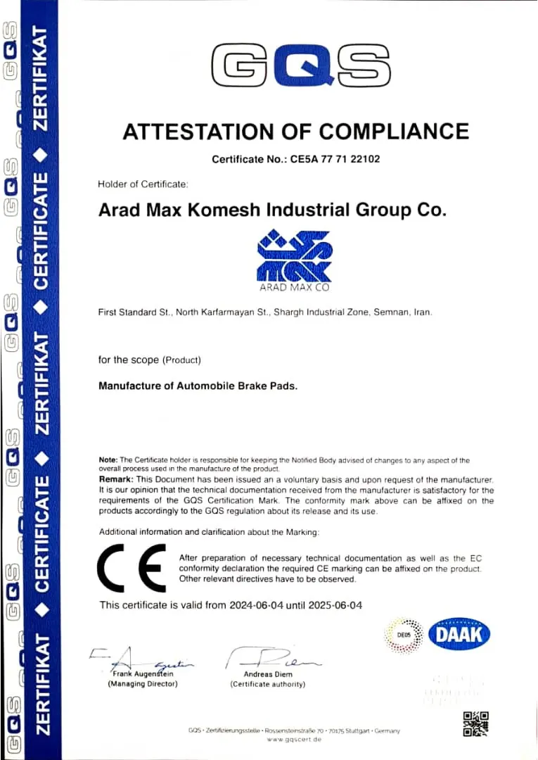 لنت ترمز آراد مکث با مواد اولیه مرغوب و مهندسی ساخت بسیار مناسب، به شما اطمینان خاطر در هنگام رانندگی می دهد.